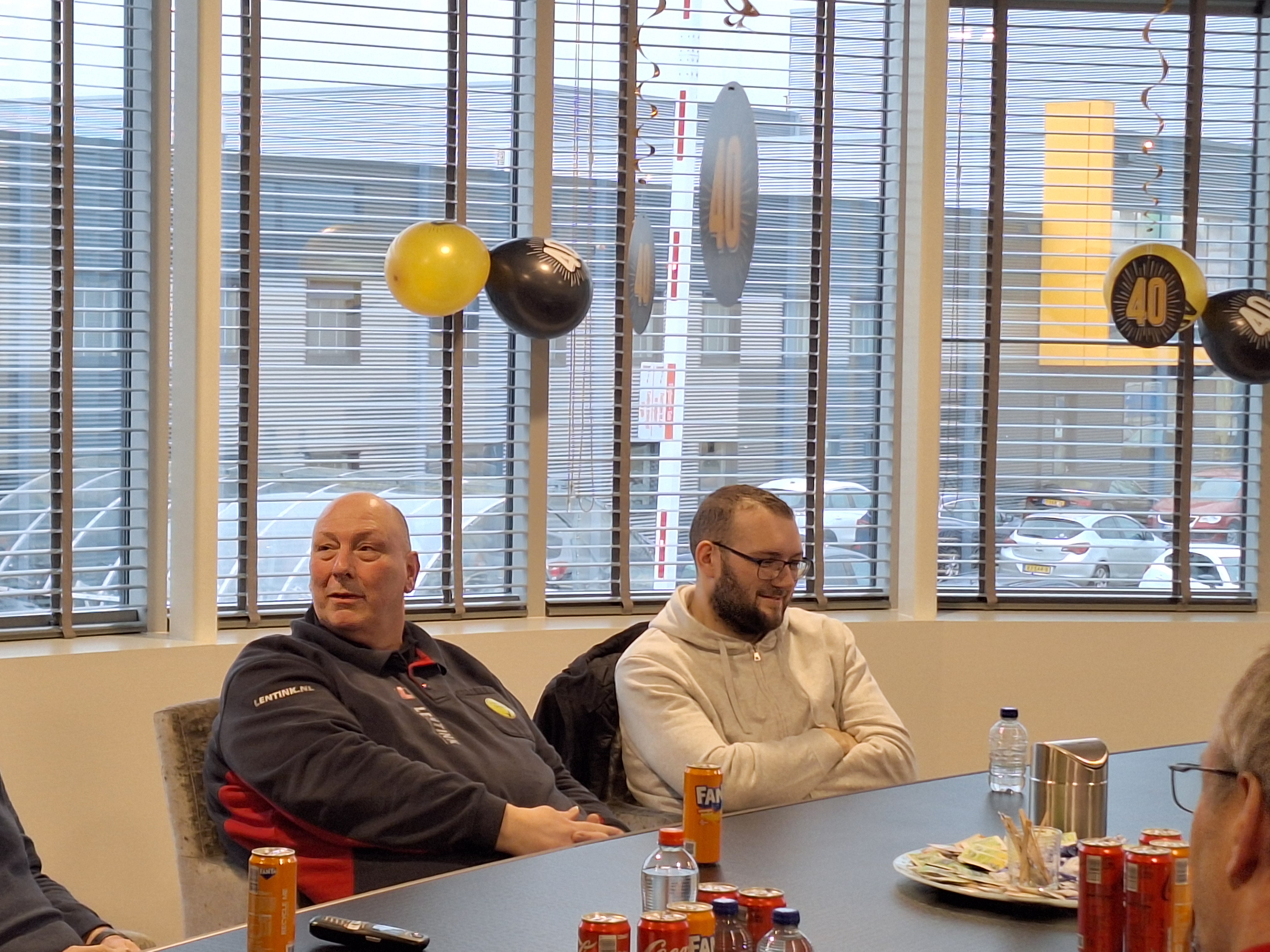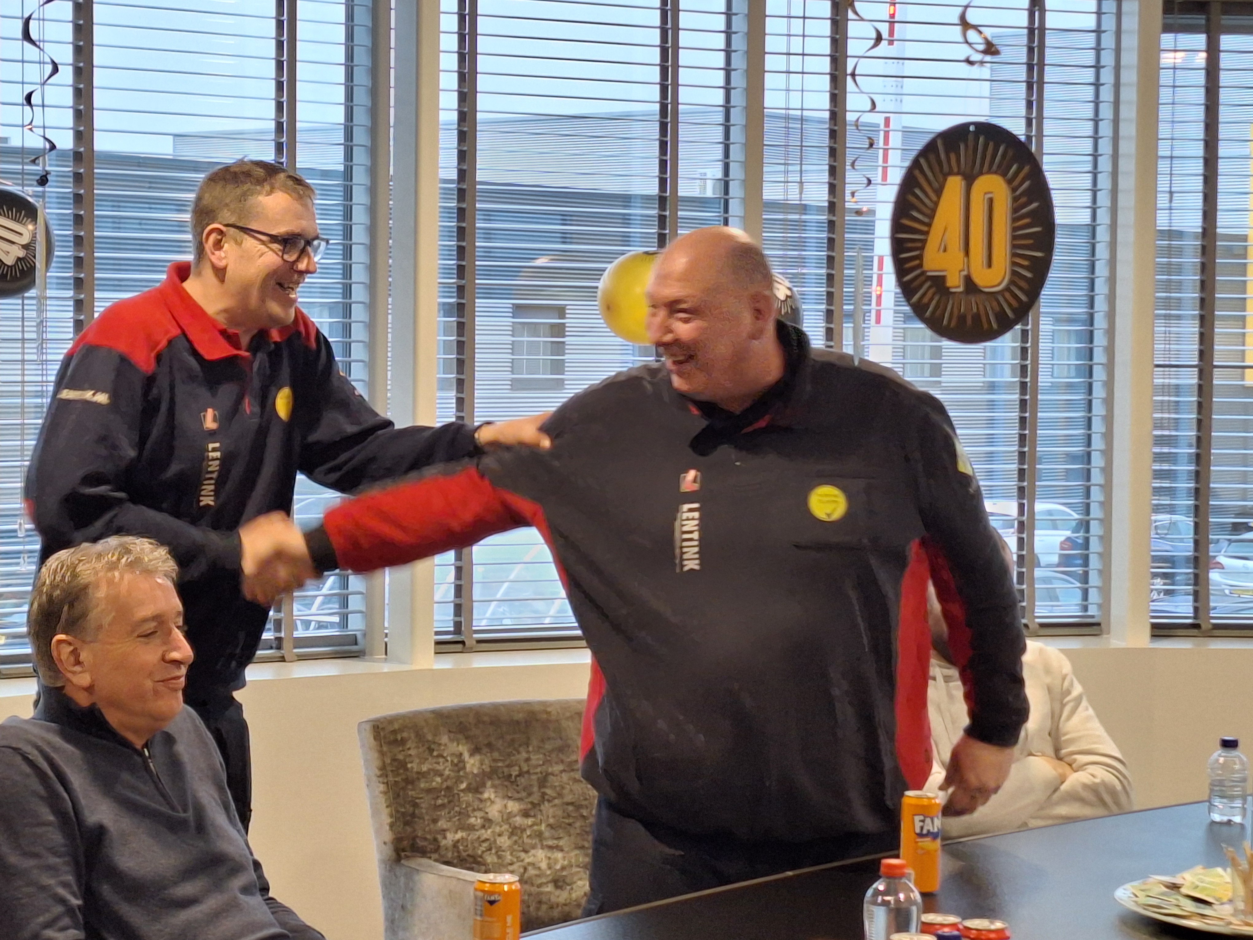 Vanzelfsprekend hebben wij dit niet ongemerkt voorbij laten gaan. We hebben dit gevierd met een traktatie voor het hele bedrijf en een borrel waarbij ook zijn vrouw en kinderen aanwezig waren. Daarnaast heeft hij attenties ontvangen die passen bij een dergelijk lang dienstverband.