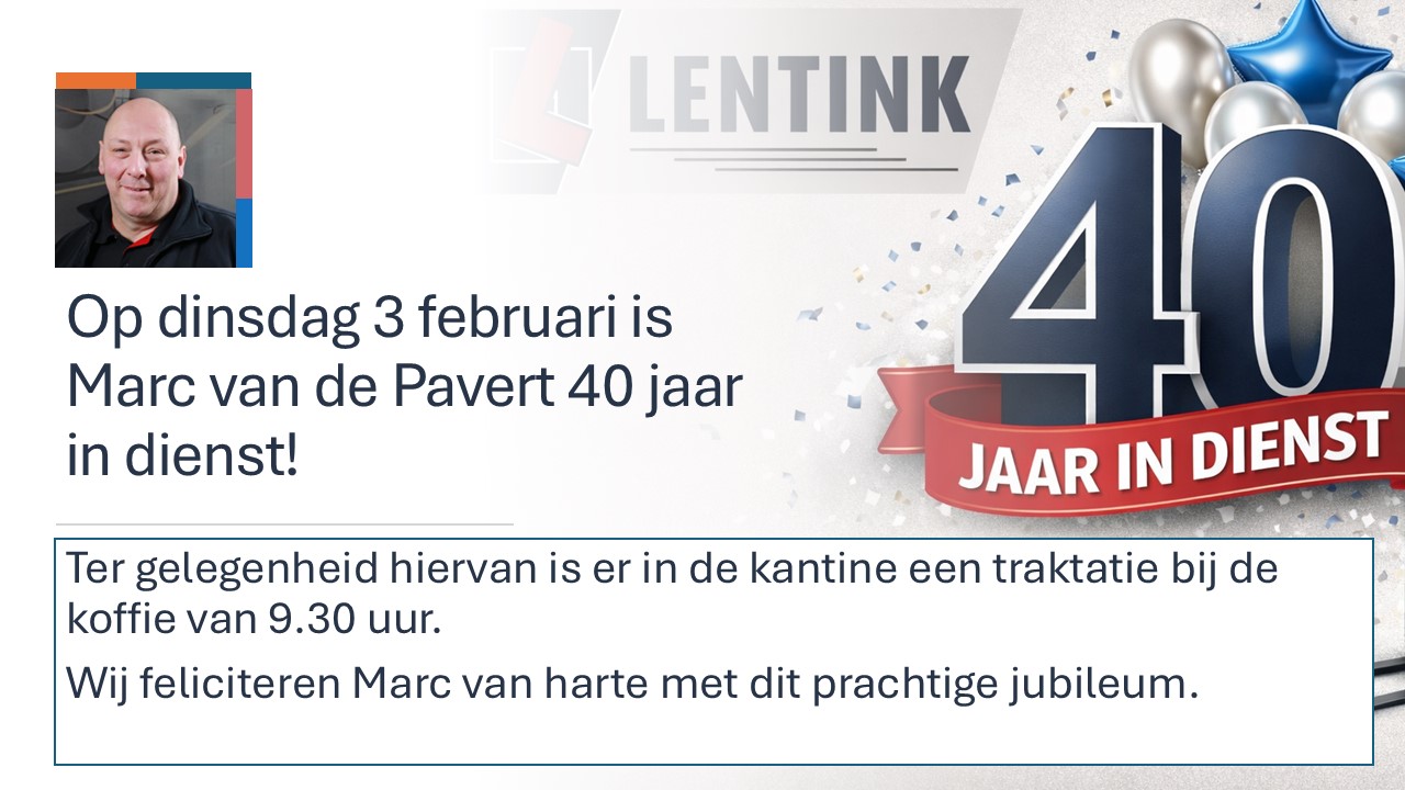 Wij zijn Marc dankbaar voor zijn jarenlange inzet en betrokkenheid en feliciteren hem met dit bijzondere jubileum.